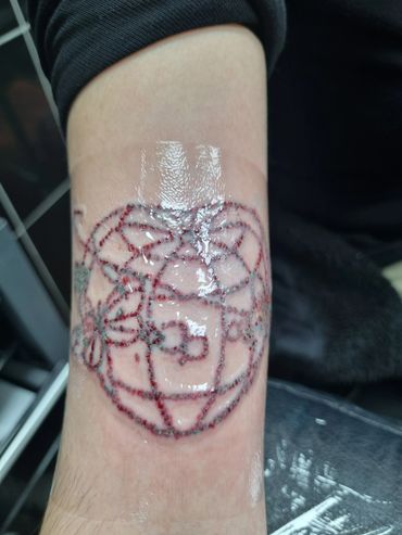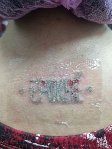 Sesión de Borrado de tatuaje recien hecha. Tatuaje ya cubierto con parche protector.